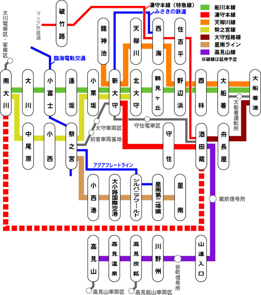 「想像」とは、現実離れした荒唐無稽なことを考えたりしゃべったりするという意味ではありません。記憶を整理するために夢を見るといわれますが、目が覚めている間にするわたしたちの想像も、それまでに見たことのあるものという範囲に限定されます。「A列車で行こうシリーズ」をどのように遊ぼうかということも、そもそもメーカーがどのようなゲームにしようとするのかということも、こうした現実的な制約のもとにあるわけです。プレーヤーの中には、実生活の中では鉄道というものが存在していない*かのように、マイカーの視点で道路ばかりをつくったり、高速バスのような直行便だらけの路線にしたり、バス停に掲出される運行系統図の体裁で『路線図』を描いてしまう人もいるようです。しかし、主役は鉄道です。見たことのないものや知らないものは、いつまでもそのままになりがち。与えられるのを待つのでなく能動的により豊かな表現や深い楽しみを勝ち取っていくには、本物の鉄道をよく観察する以外に方法はありません。
